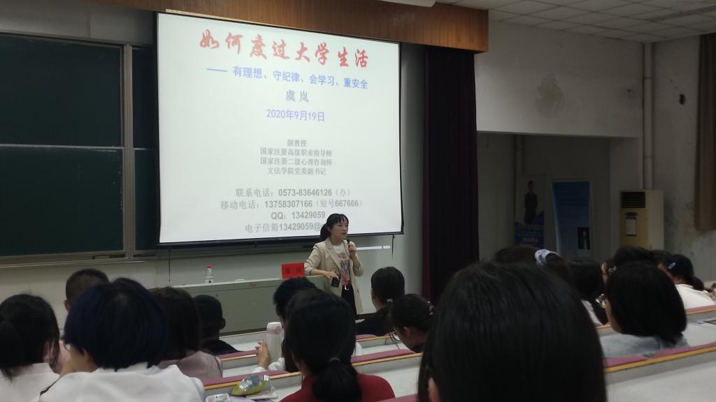 开学典礼结束后,虞岚老师给新生上了开学的第一堂思政课。课堂从有理想、守纪律、会学习、重安全的角度出发,做新时代的老员工,建议新生们珍惜大学的美好时光,不断修炼提升自我,开创属于自己的充实大学天地。只争朝夕,不负韶华,不忘初心,砥砺前行。期待着文法的新生们以文法院训“铁嘴、硬笔、良知”时刻武装自己,以开学典礼为契机,以红船精神为指引,在qy球友会官网这个崭新的大舞台上书写下自己浓墨重彩的一笔,也为自己的青春年华写下无悔的篇章。