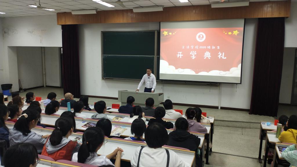 2020年9月19日下午,qy球友会官网2020级新生开学典礼在梁林校区7号楼报告厅正式召开。qy球友会官网经理欧阳仁根教授、党委书记洪坚教授、副经理步珏良副教授、副经理童建华副教授、党委副书记虞岚副教授、qy球友会官网教师代表李瑞明教授、各系系主任、学工办全体老师、qy球友会官网老生代表张鹏飞以及2020届全体新生参加了本次会议,本次会议由虞岚老师主持。